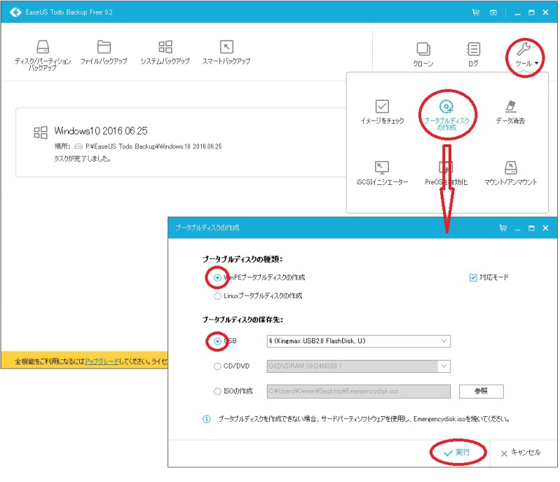 「ツール」「ブータブルディスクの作成」「WinPEブータブルディスクの作成」の