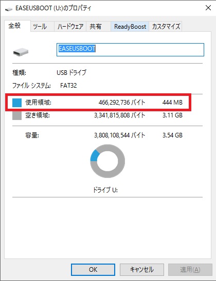 中身は隠れファイルになっているようで見えませんが、容量は444MBです。