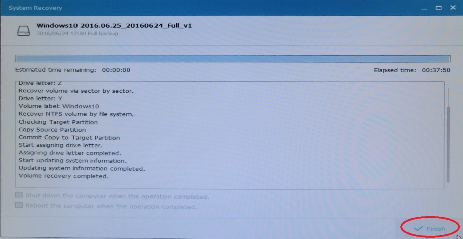 Biosの設定で、起動オプションの第一順位ををHDDドライブに設定して再起動するとリカバリー完了です。 |