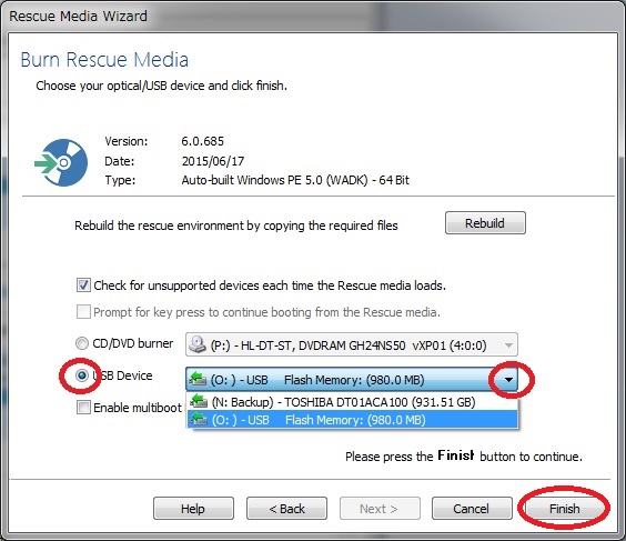 システム不調時の復元に備えてブータブルディスクを作成します。