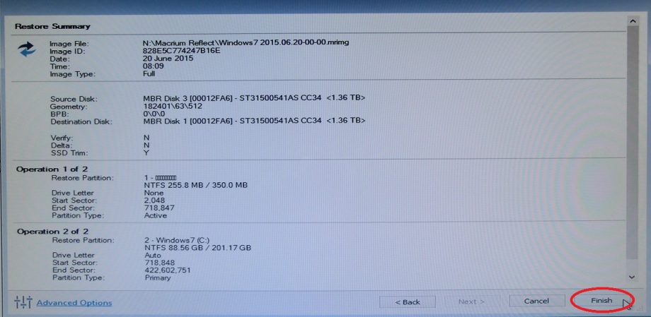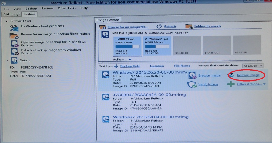 復元元のイメージが間違っていないか確認して「Next」をクリックします。