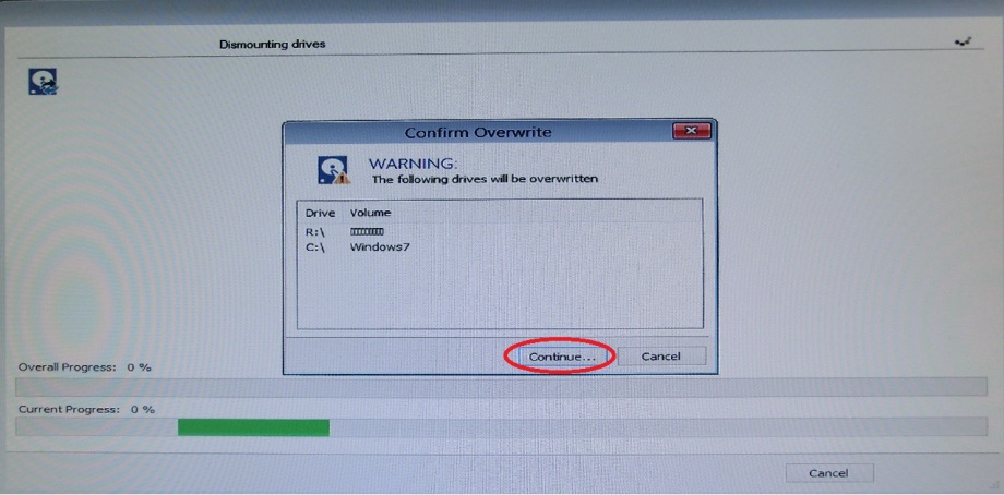「Continue」をクリックするとリカバリーが開始されます。 |
