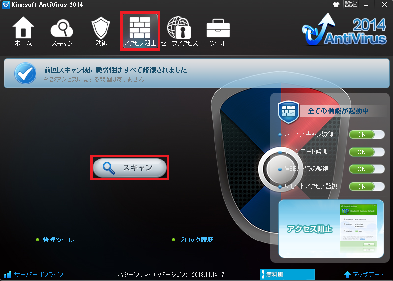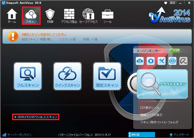 起動画面です。スキャンをクリックします。